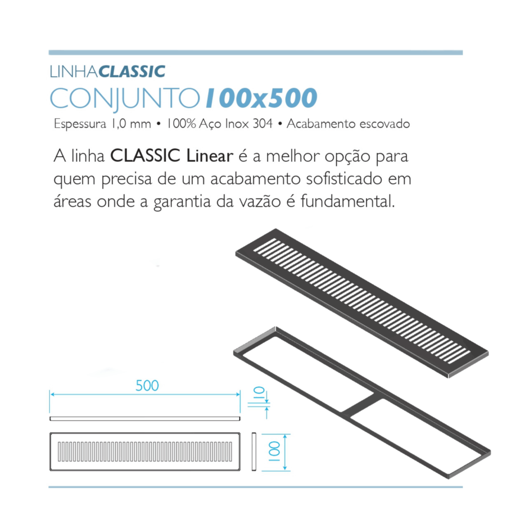 O ralo linear é perfeito para substituir os modelos convencionais no box do banheiro. Ele facilita a inclinação do piso e proporciona escoamento eficiente, além de um acabamento de alto nível.